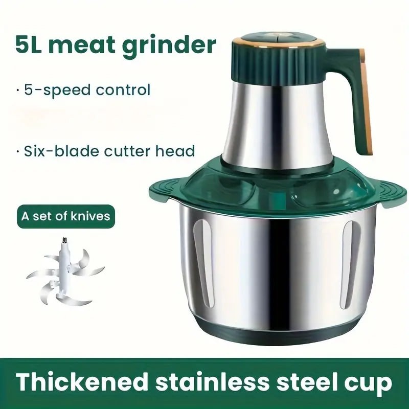 1.32gal 5 Gears, 6 Blades, 6 Seconds Fast Meat Grinder, Household Function Chopped Vegetables Meat Grinder, Garlic Mud, Food Supplement, Juice And Noodle Maker, Electric Cooking Machine For 5, Can Con