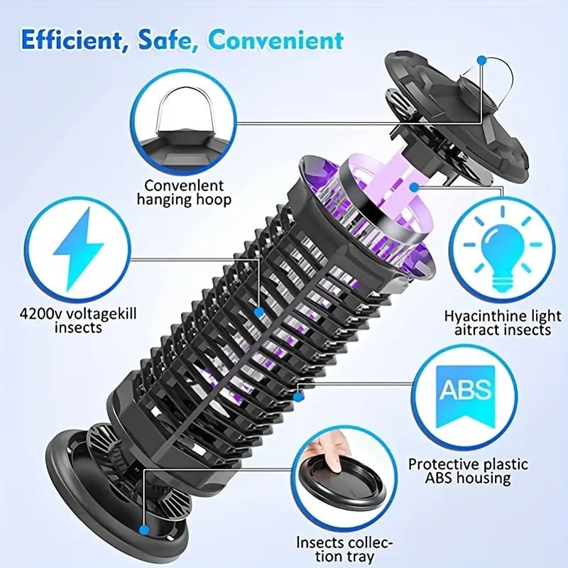 Powerful & Effective: The UV light attracting mosquitoes into the zapper, the bugs will immediately be killed by the 1000V high voltage. It is most effective way to kill the Insect without endangering the environment and human health.