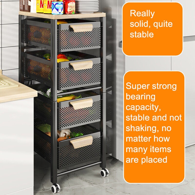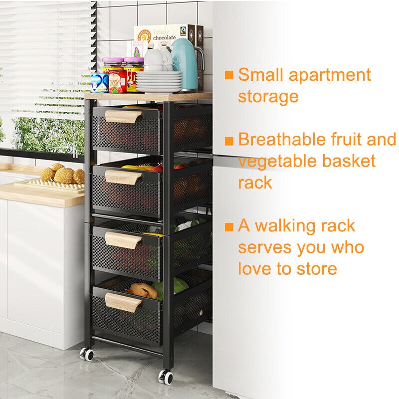 4/5 Tier Kitchen metal Storage Rolling Cart organizer with Drawers Wheels Shelf
