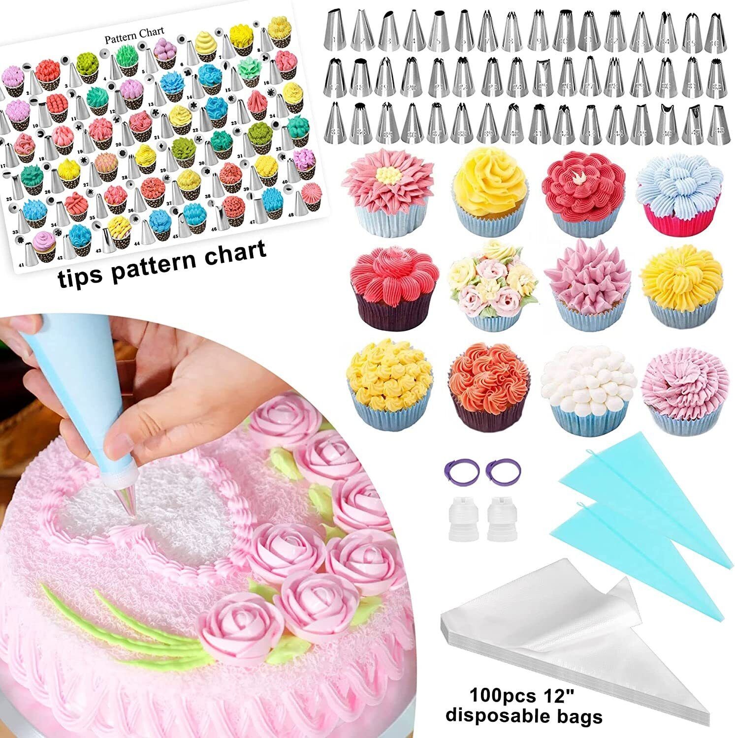 469x Set Cake Decorating Supplies Kit Baking Tools Turntable Stand Cupcake liner