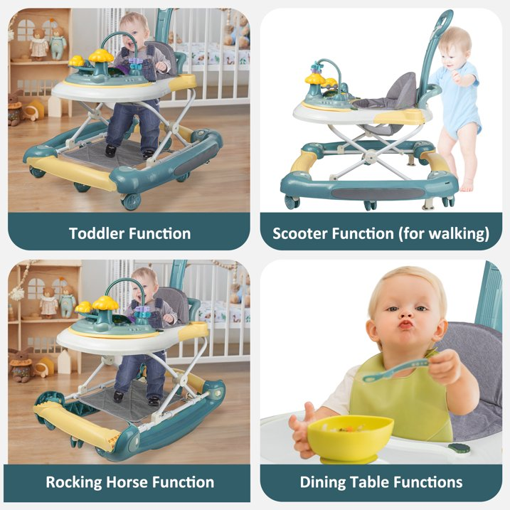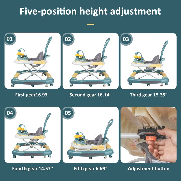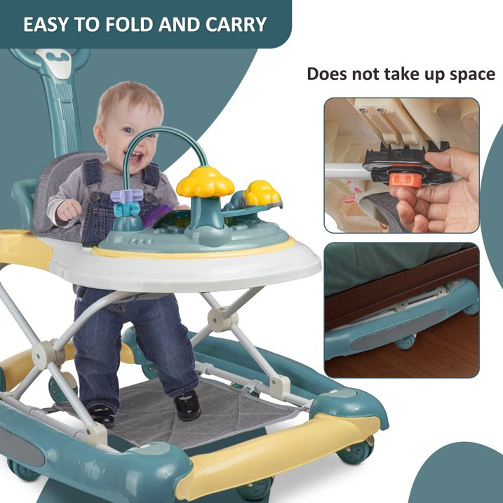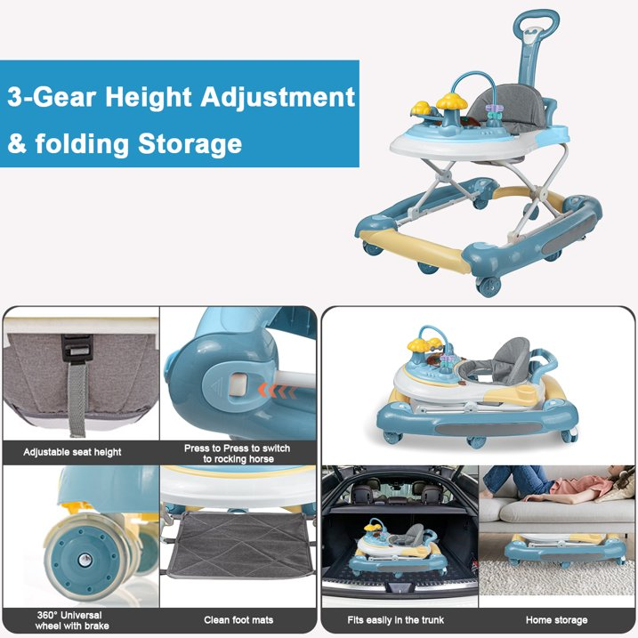 Multiple Baby Caring Modes: Designed to be foldable with detachable game plate, this walker can be also regarded as a dining car to take care of your baby and helps to learn eat independently. It is of smooth chassis and appropriate distance that will not hurt baby's heel or toe.