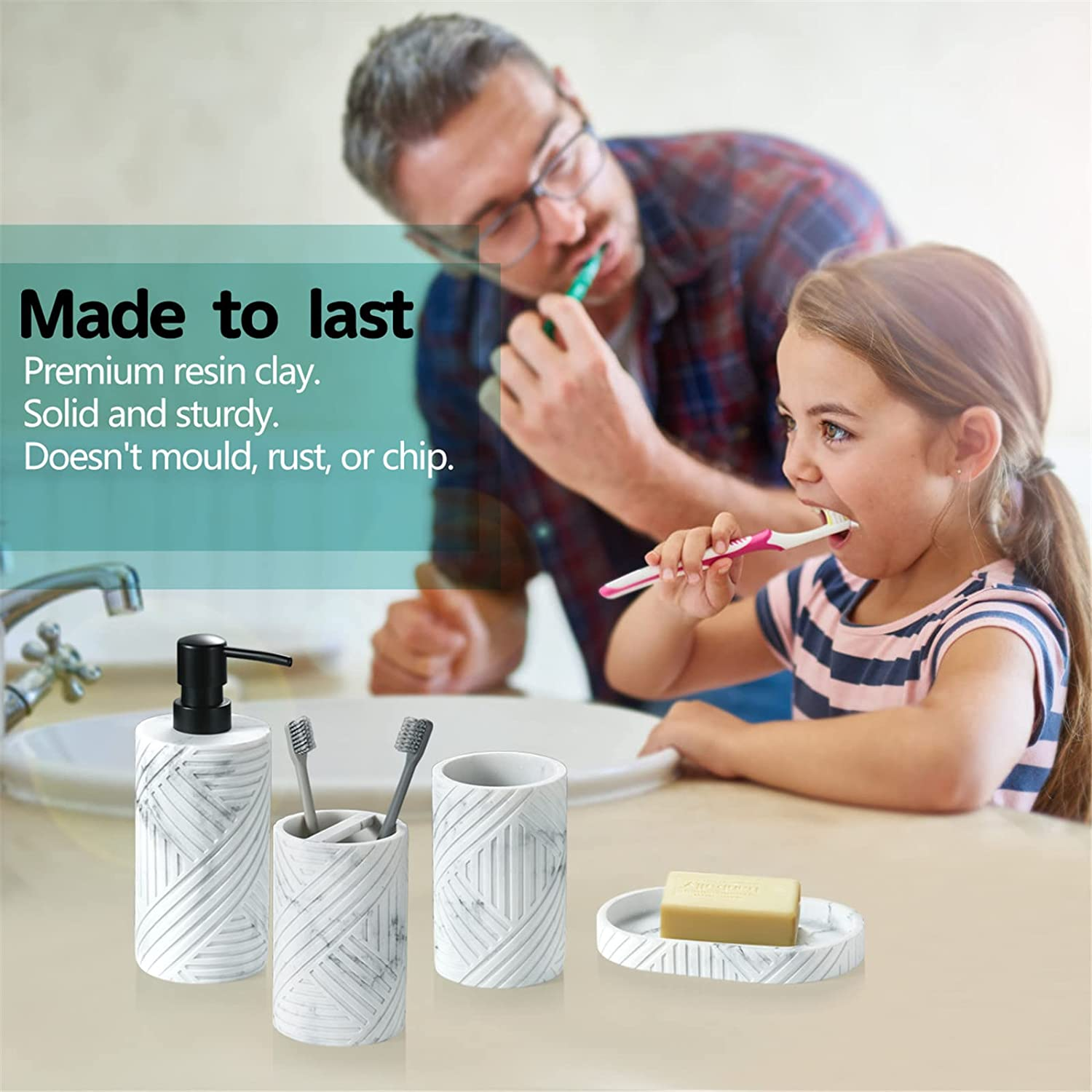 Bathroom Accessories Set 4 Pcs Marble Look Resin Vanity Counter Countertop Acces