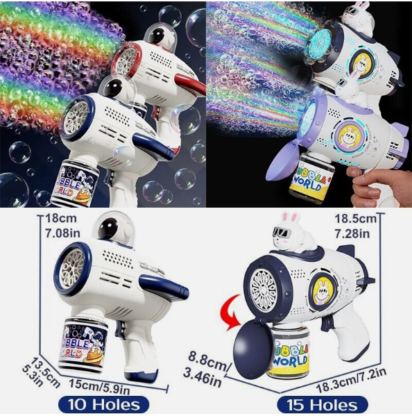 360°Rotatable Without Leakage - The 360-degree leak-proof design bubble gun does not leak bubble fluid leaving hands dirty or sticky. The leak-proof silicone sealing ring ensures a perfect fit with the bubble gun and bottle. 360 degrees rotatable, shoot bubbles in different directions then be surrounded by bubbles in a moment.