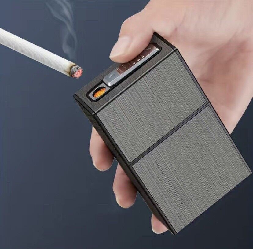 Cigarette Case with Lighters Rechargeable Windproof Flameless Portable Regular Size 100's Sli