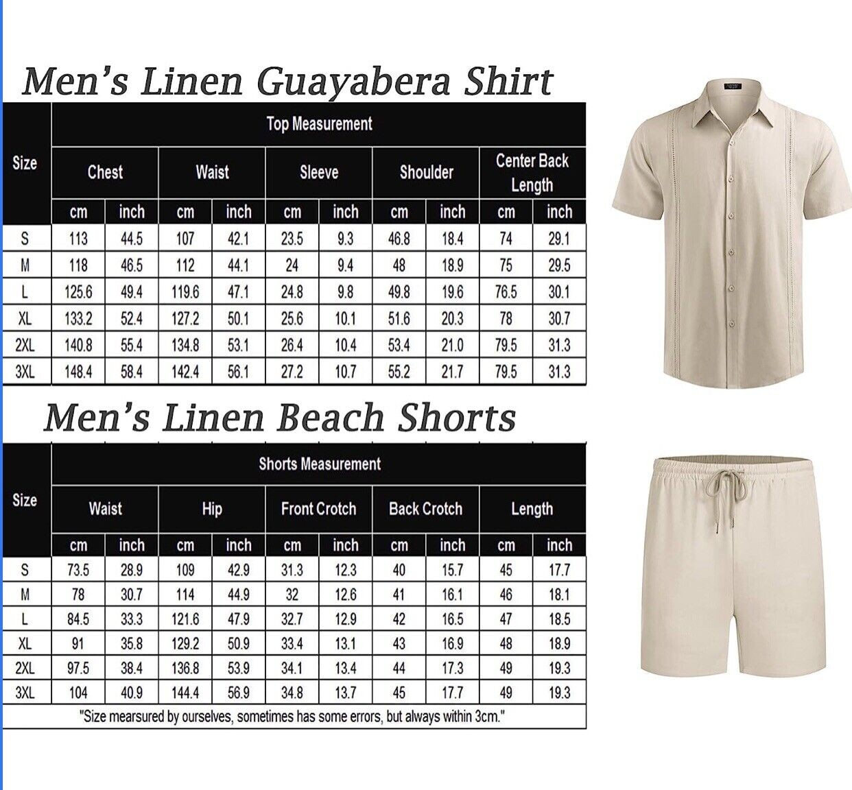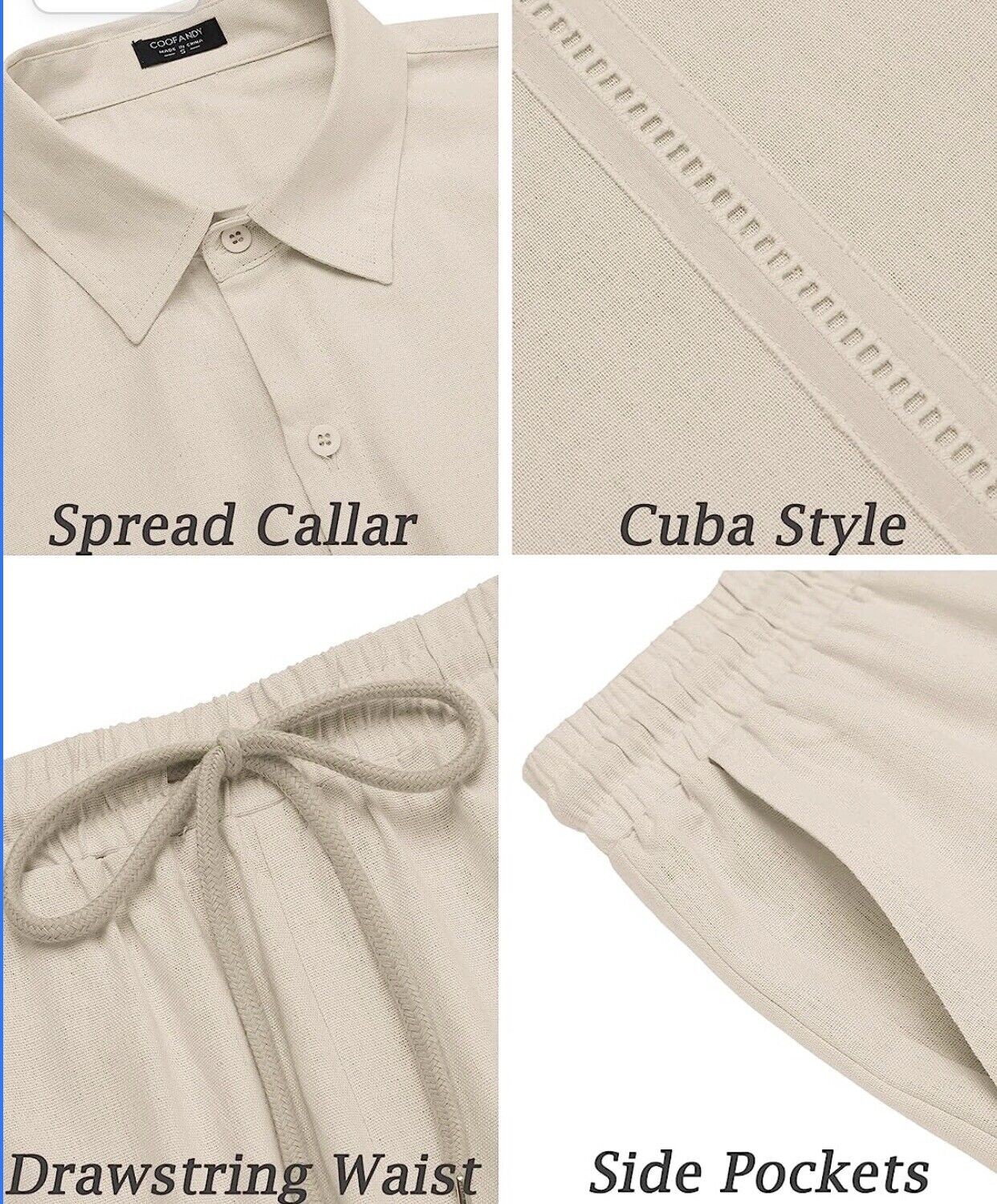 COOFANDY Men 2 Piece Linen Set Beach Guayabera Outfit Button Down Shirt XL