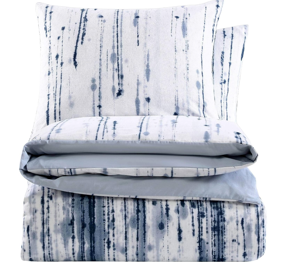 Update your bedding ensemble with the City Scene Sokal Comforter Set. Constructed with soft, prewashed cotton and featuring a bold, ink-dripped print in indigo, the Sokal Set is sure to give you the look of an artist’s studiowithout the mess. Comforter features a polyester fill and a solid light blue reverse. Set is machine washable for easy and convenient care.