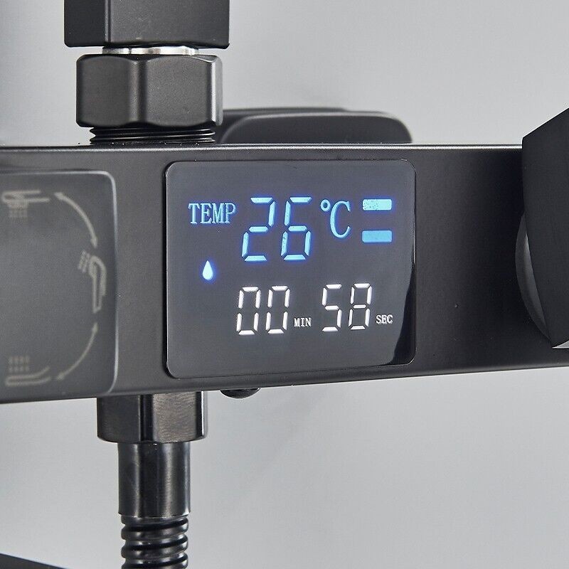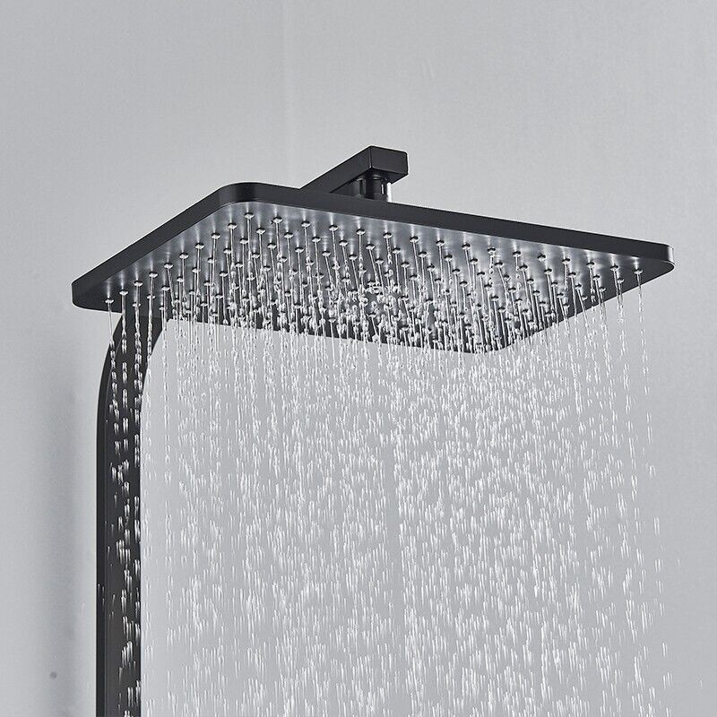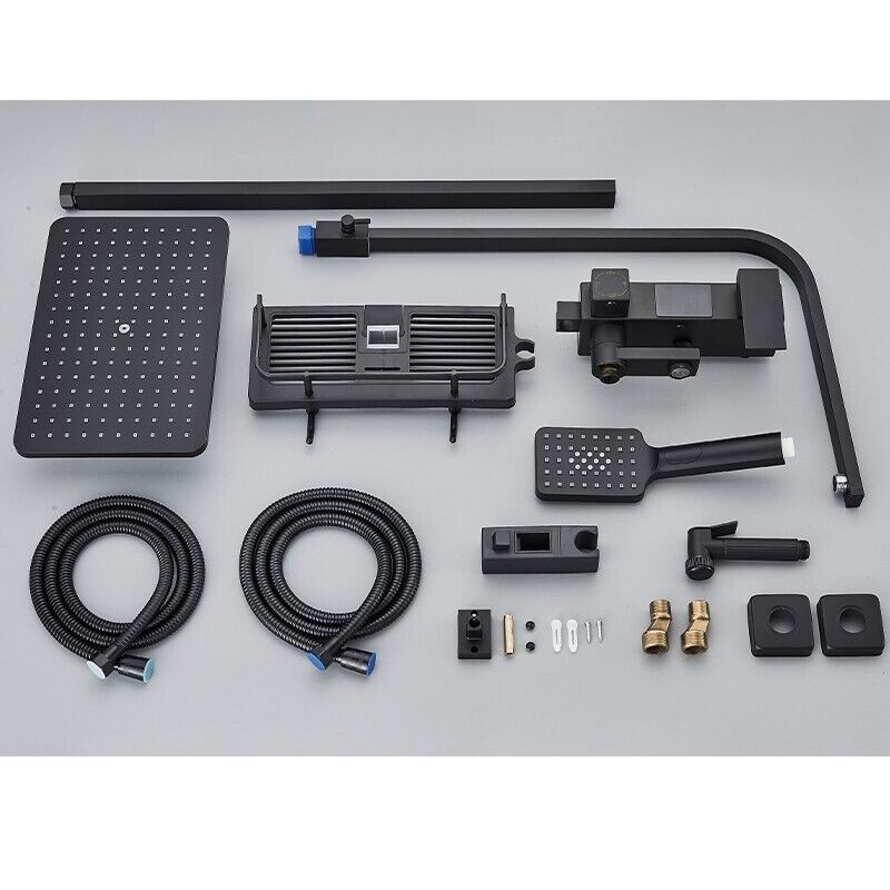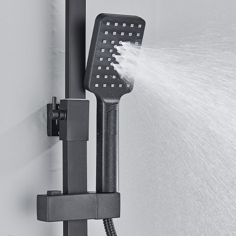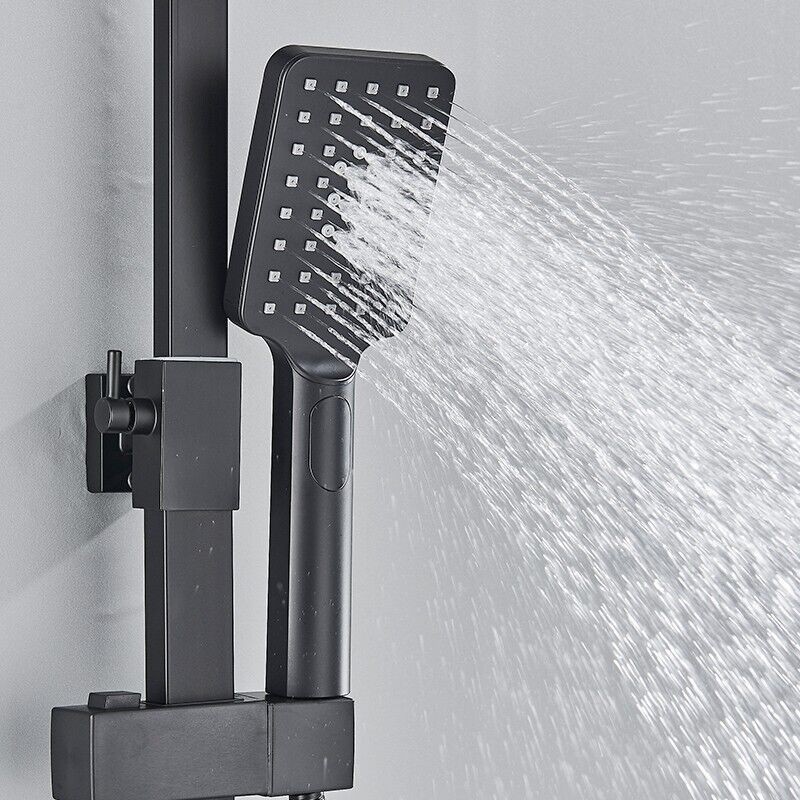 Modern Exposed Black Shower Mixer Twin Head Bar Set Bathroom Square Valve Tap