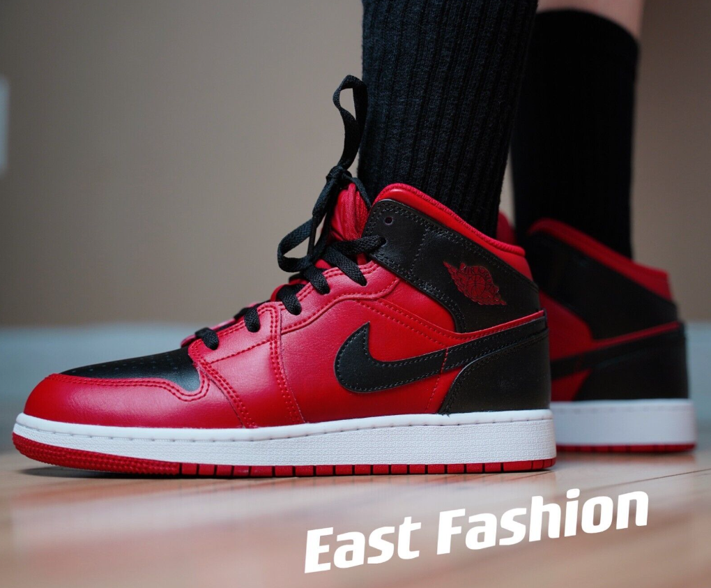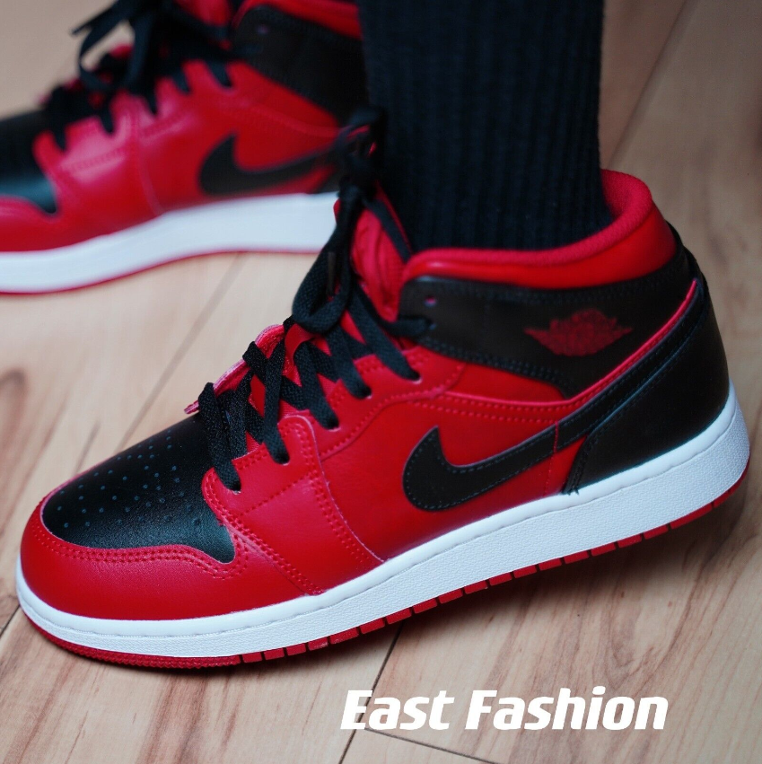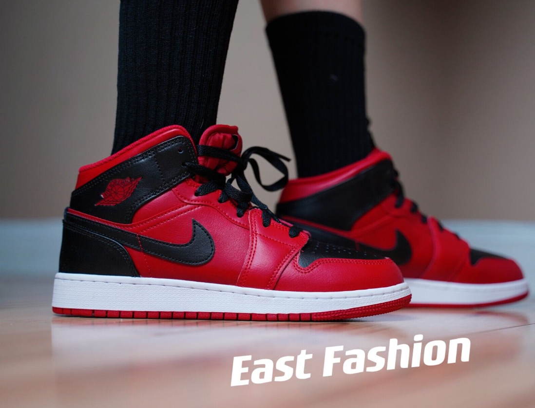Nike Air Jordan 1 Mid Reverse Bred 554724-660 Men's & GS Sizes