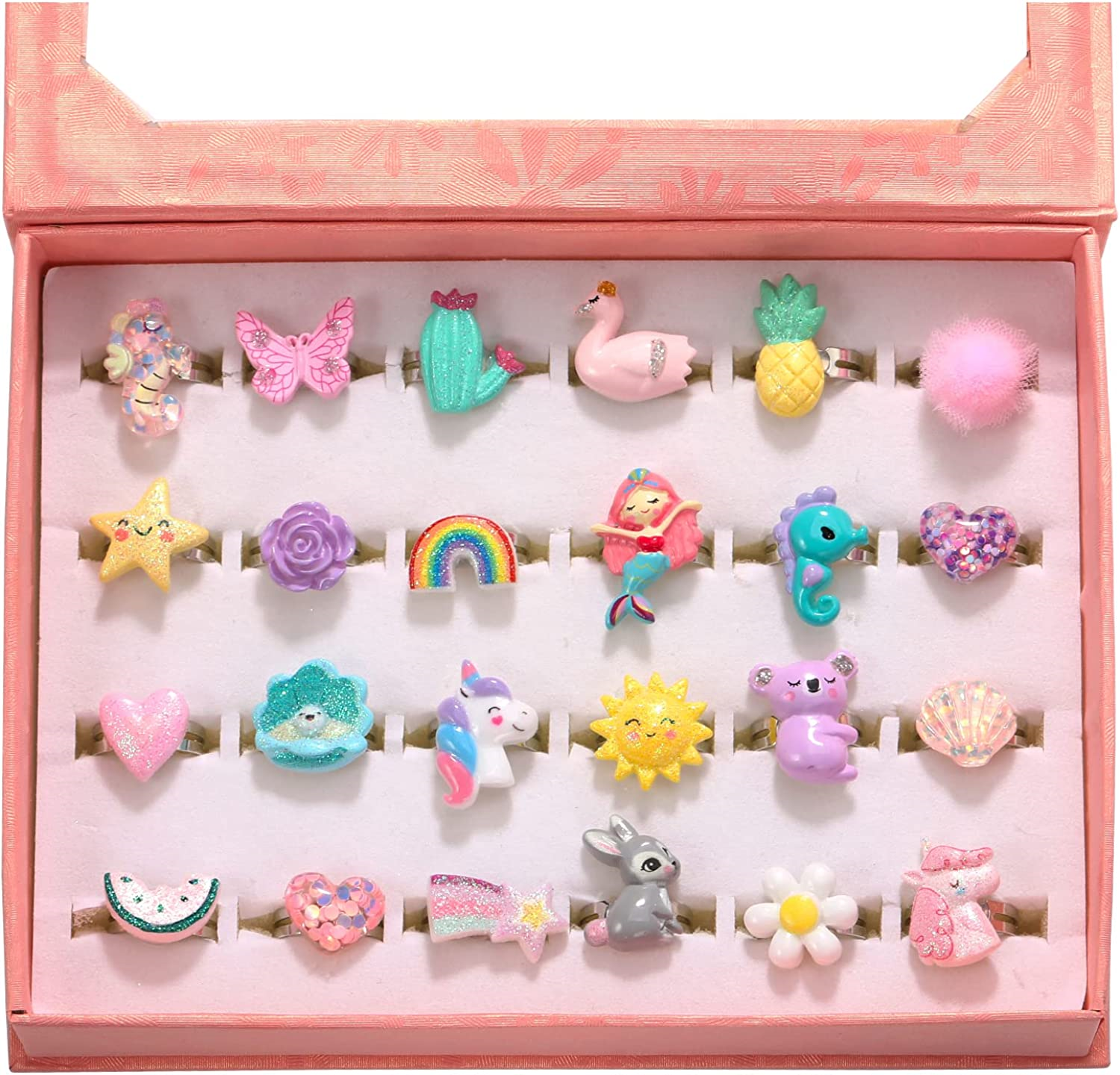 PinkSheep Little Girl Jewel Rings in Box, Adjustable, No Duplication, Girl Play