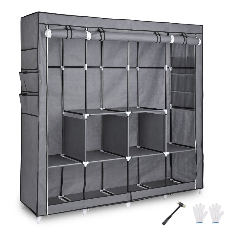 Portable Fabric Closet Wardrobe Roll-Up Door Clothes Rack Storage Organizer New