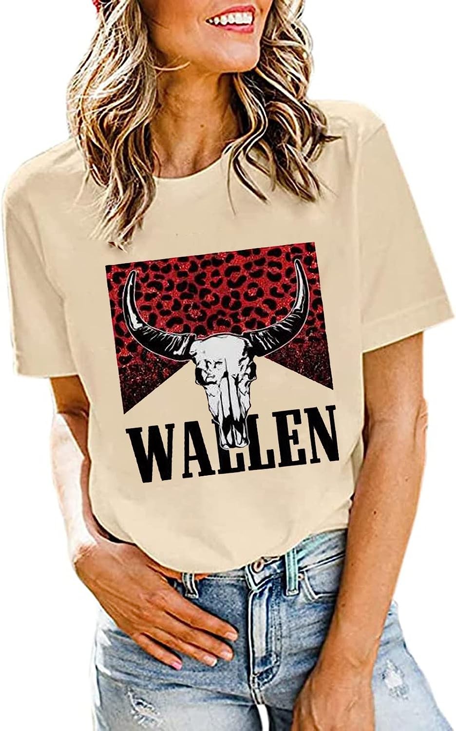 Retro Steer Skull Western T-Shirt Women Vintage Country Music Shirt Cute Cowgirl