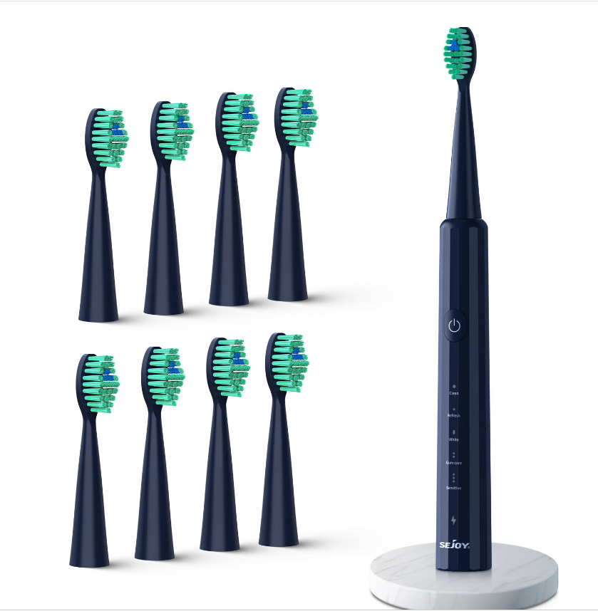 SEJOY Sonic Electric Toothbrush USB Rechargeable W/ 8 Duponts Brush Heads 5Modes