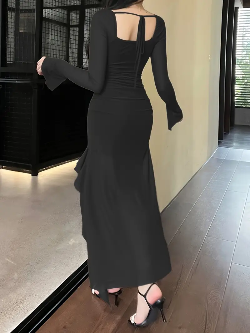 https://mamonoanstore.co/product/solid-ruffle-trim-split-asymmetrical-dress-elegant-flare-sleeve-mesh-ruched-dress-womens-clothing-FteBw
