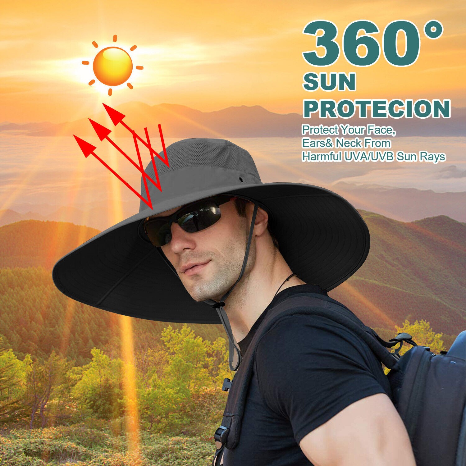 Super Wide Brim Bucket Hat UPF50+ Waterproof Sun Hat for Fishing Hiking Camping