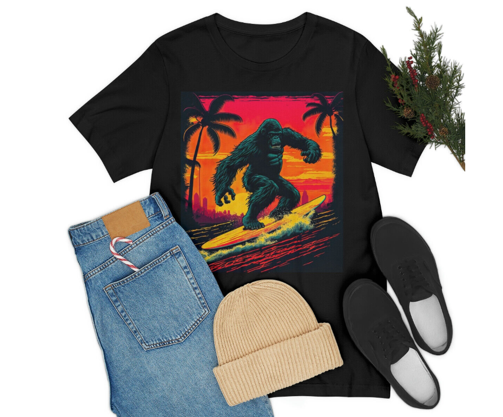 SURFING GORILLA Unisex Short Sleeve SURF Tee T-Shirt Beach Surfer Retro Vintage