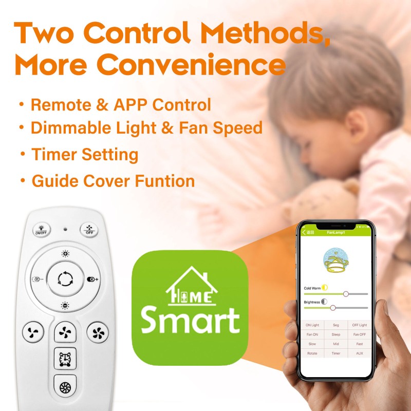 TCFUNDY LED Ceiling Fan with Light Phone APP & Remote Control Ceiling Fan Lamp