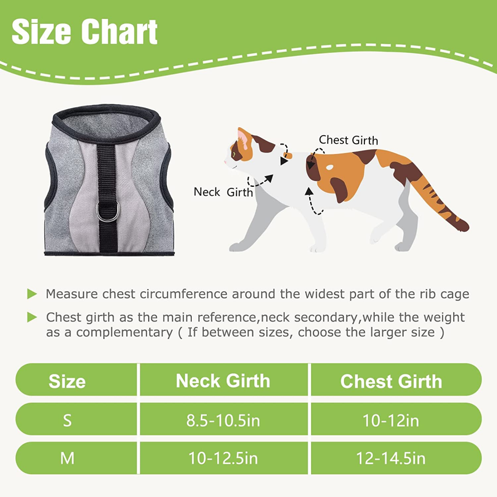 VKPETFR Cat Harness and Leash Set, Escape Proof Adjustable Kitten Medium