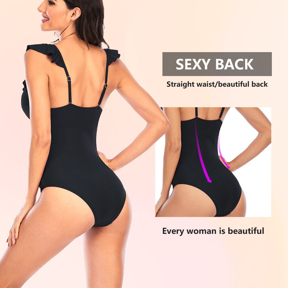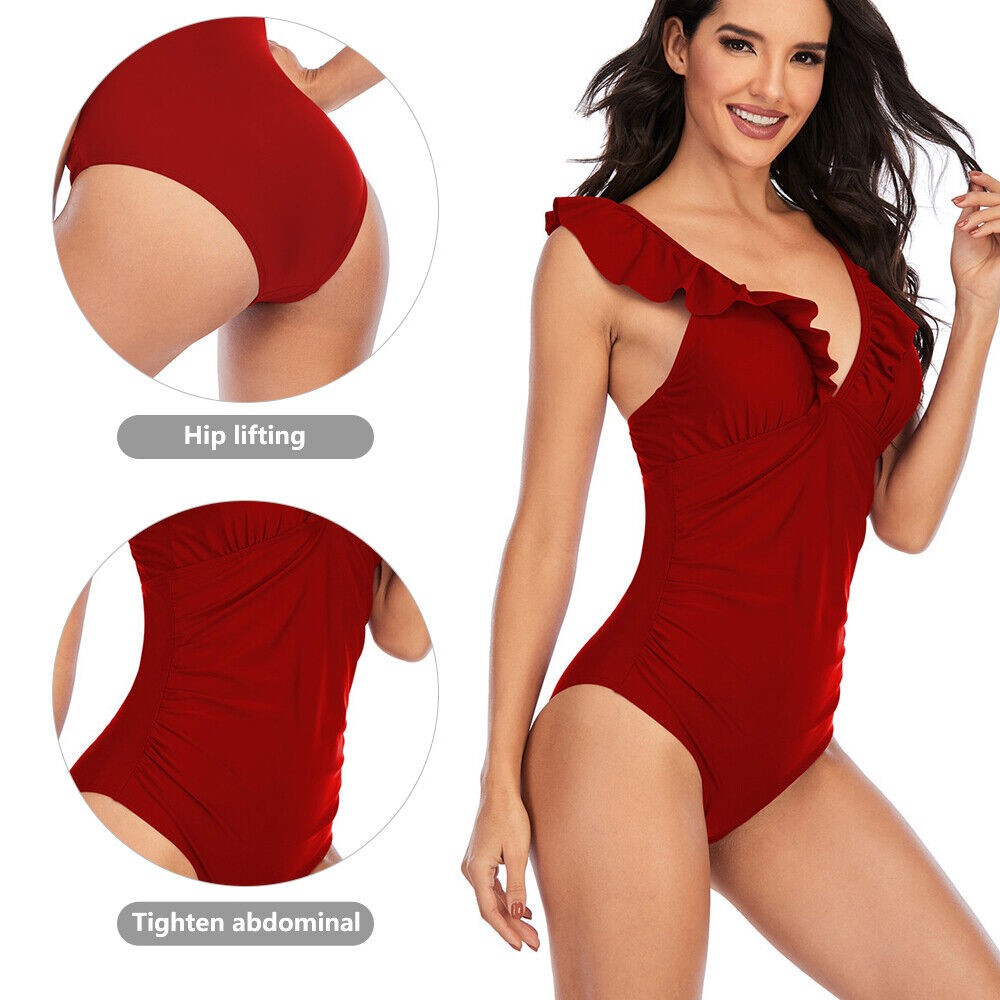 Women One Piece Swimsuits Tummy Control Bathing Suit Ruffle V Neck Swimwear